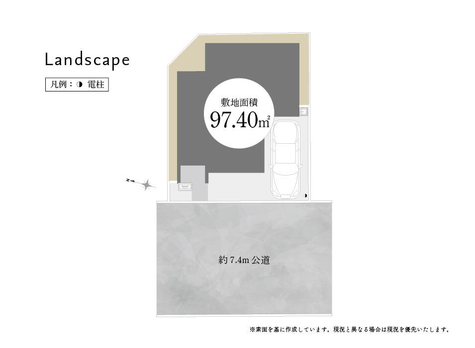 ゆとりある7.4m公道に面し、明るく開放的な立地。