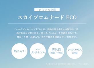 定期的なメンテナンスを必要としない金属防水工法「スカイプロムナード」日射反射率が高く、通常のスカイプロムナードよりも高水準の温度抑制効果があります。 -