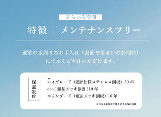 他の防水とは異なり、表面や排水口のお掃除など通常の水回りのお手入れのみで永くご利用いただけます。 -