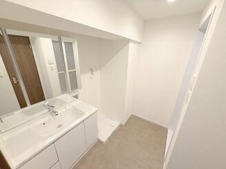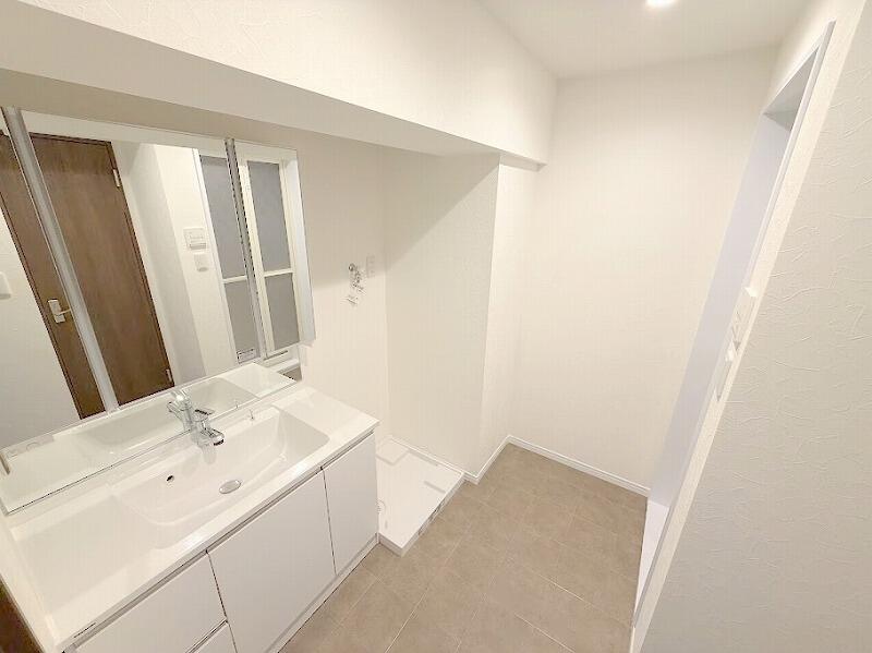 お子様と一緒に入浴準備をする際などに嬉しい広さのある洗面室。