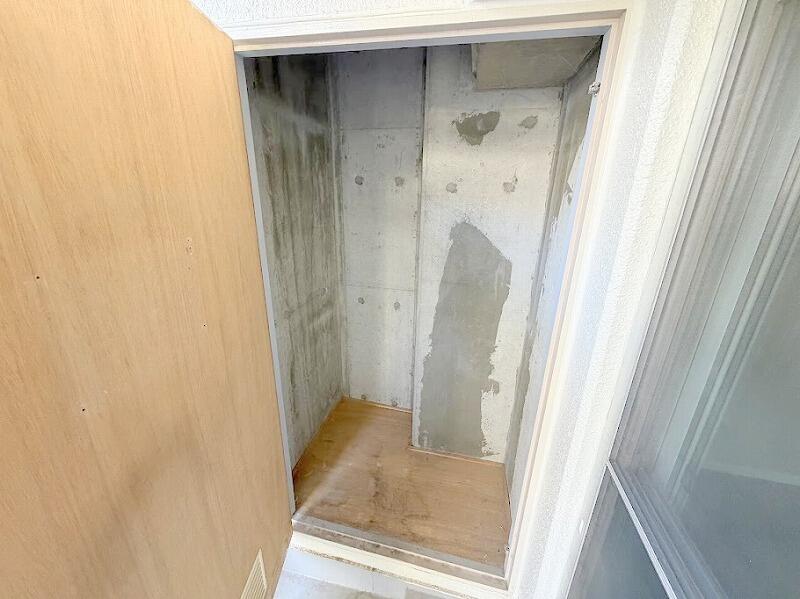 南東側のバルコニーには便利な収納スペースが設置されております。 -