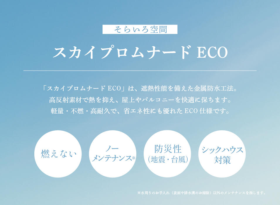 遮熱性能を備えた金属防水工法。高反射素材で熱を抑え、屋上やバルコニーを快適に保ちます。軽量・不燃・高耐久で省エネにも優れたECO仕様。 -