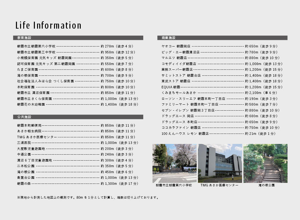 | 交通 | 東武東上線「朝霞」駅 徒歩14分 東武東上線「朝霞台」駅 徒歩19分 JR武蔵野線「北朝霞」駅 徒歩20分 |
