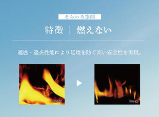遮熱・遮炎はもとより、延焼・燃え広がりを防ぐ二重の安全性を実現し、国の不燃認定を取得。火災のリスクを低減します。 -