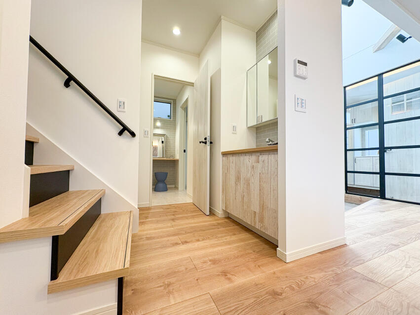 帰宅後に気持ちが明るくなるような開放的で明るい玄関