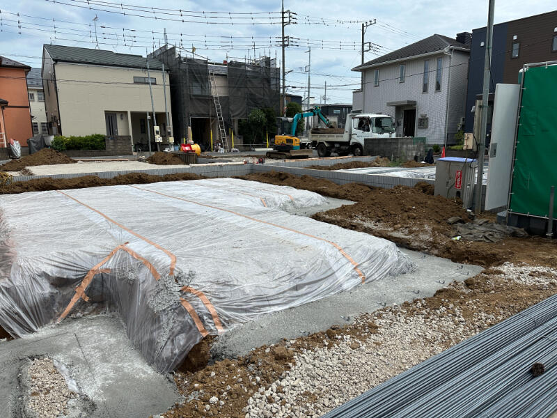 現地レポート② 2024.09.13 皆さん、こんにちは♪ 2回目の現地をレポートします! こちらは7月下旬の現地の様子。 もう土台が出来上がってきていました! この後、基礎工事の一段階とされる配筋を施工し、 検査を受けたのちにコンクリートを流し込みます。 基礎が出来上がるのが楽しみですね! ではまた次回お会いしましょう!